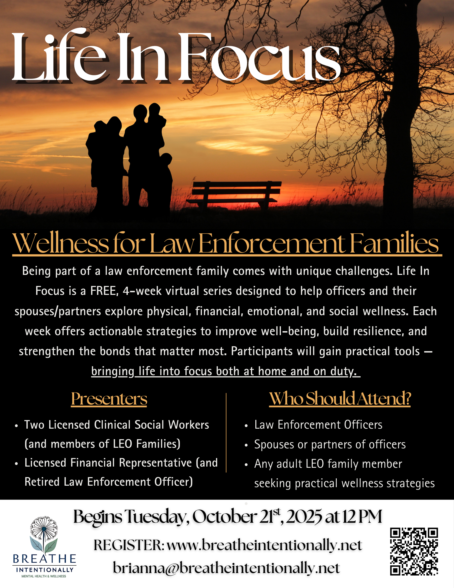 Being part of a law enforcement family comes with unique challenges. Life In Focus is a free, 4-week virtual series helping officers and the...